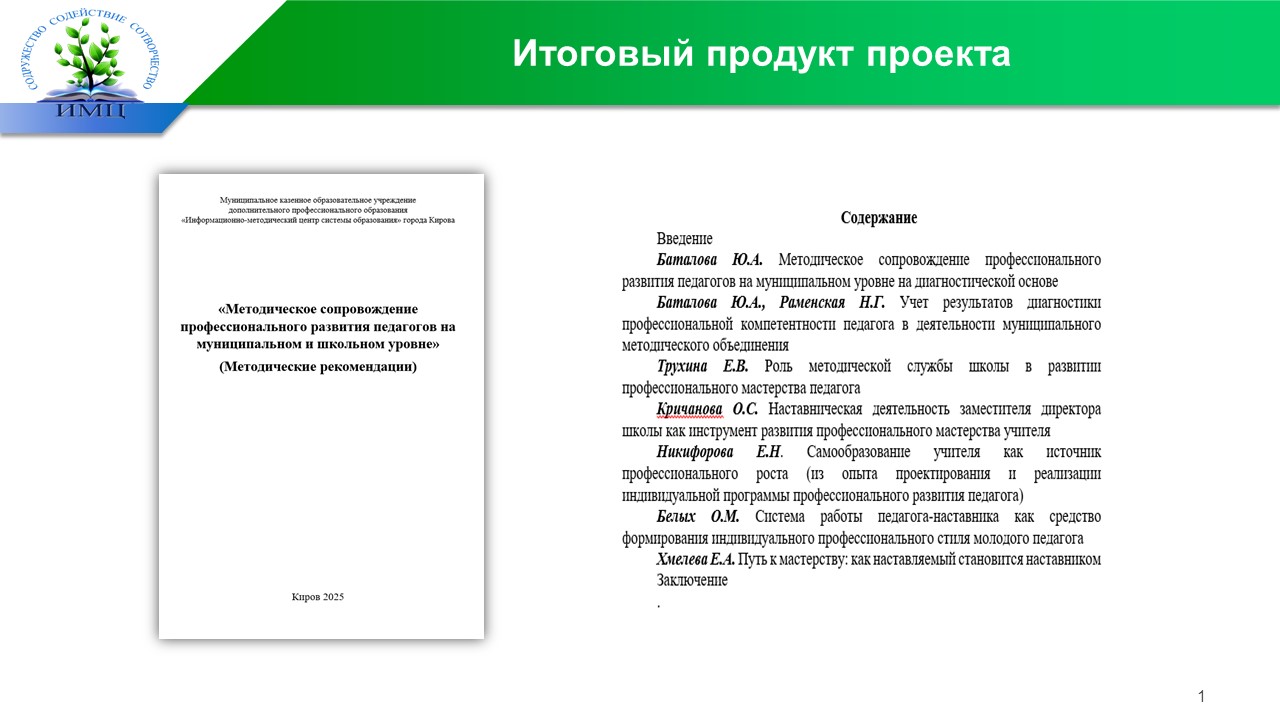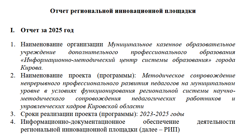 Приказом МКОУ ДПО ИМЦ города Кирова от 30.09.2024 года № 63 утверждены составы временных творческих коллективов педагогов города Кирова, которые планирую разработать инновационные педагогические продукты в 2024-2025 учебном году. Один из них – временный творческий коллектив, состоящий из числа методистов Читать далее …